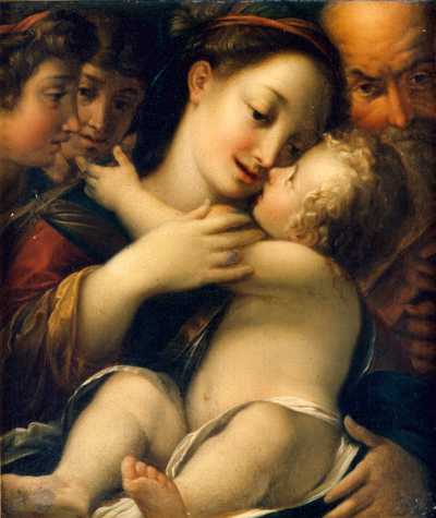 Holy Family with two Angels, Bologna Italy, 16th century.