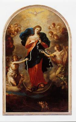 Influencer: Mary, Undoer of Knots. This is the baroque painting by Johann Schmidtner from 1700, housed at St. Peter am Perlach, in Augsburg, Bavaria, Germany.